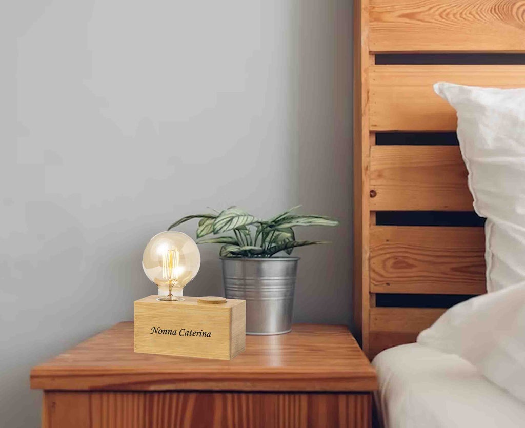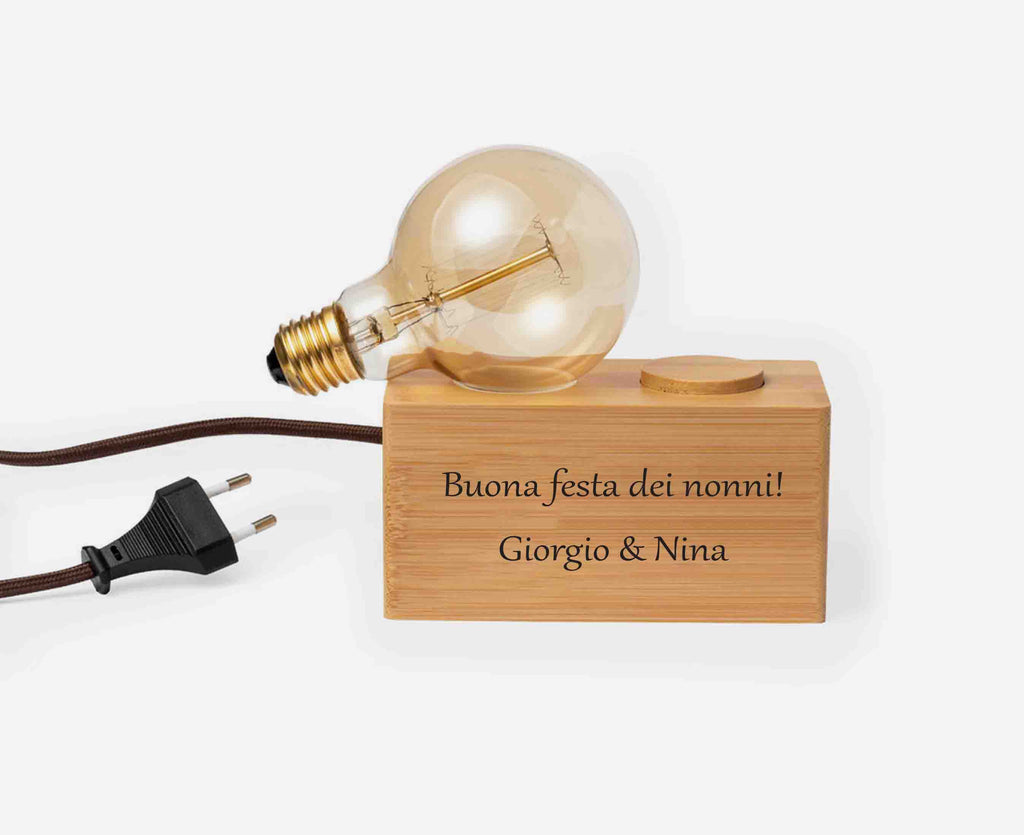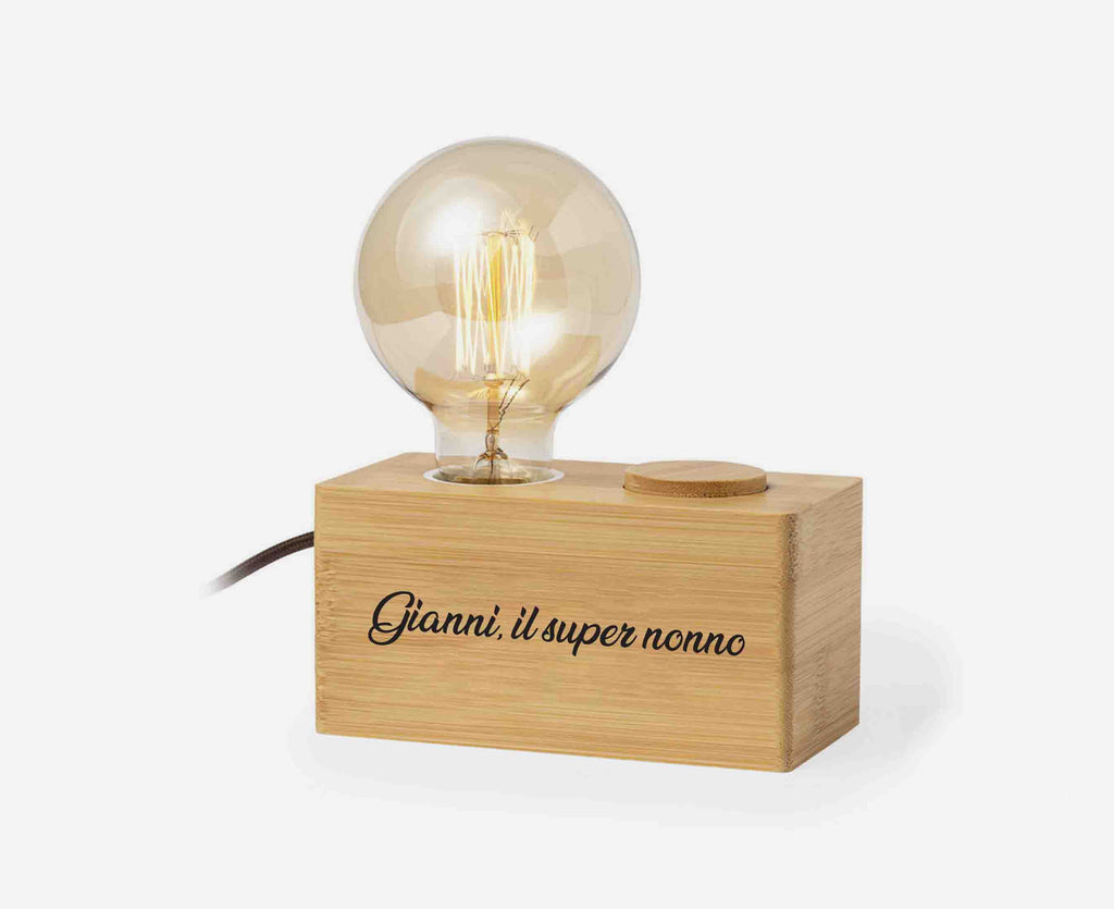 Stanco dei soliti regali? Scegli la nostra lampada da camera in bambù, personalizzata con incisione. Lampadina 40W. Intensità della Luce Regolabile. AC 220-240V.
