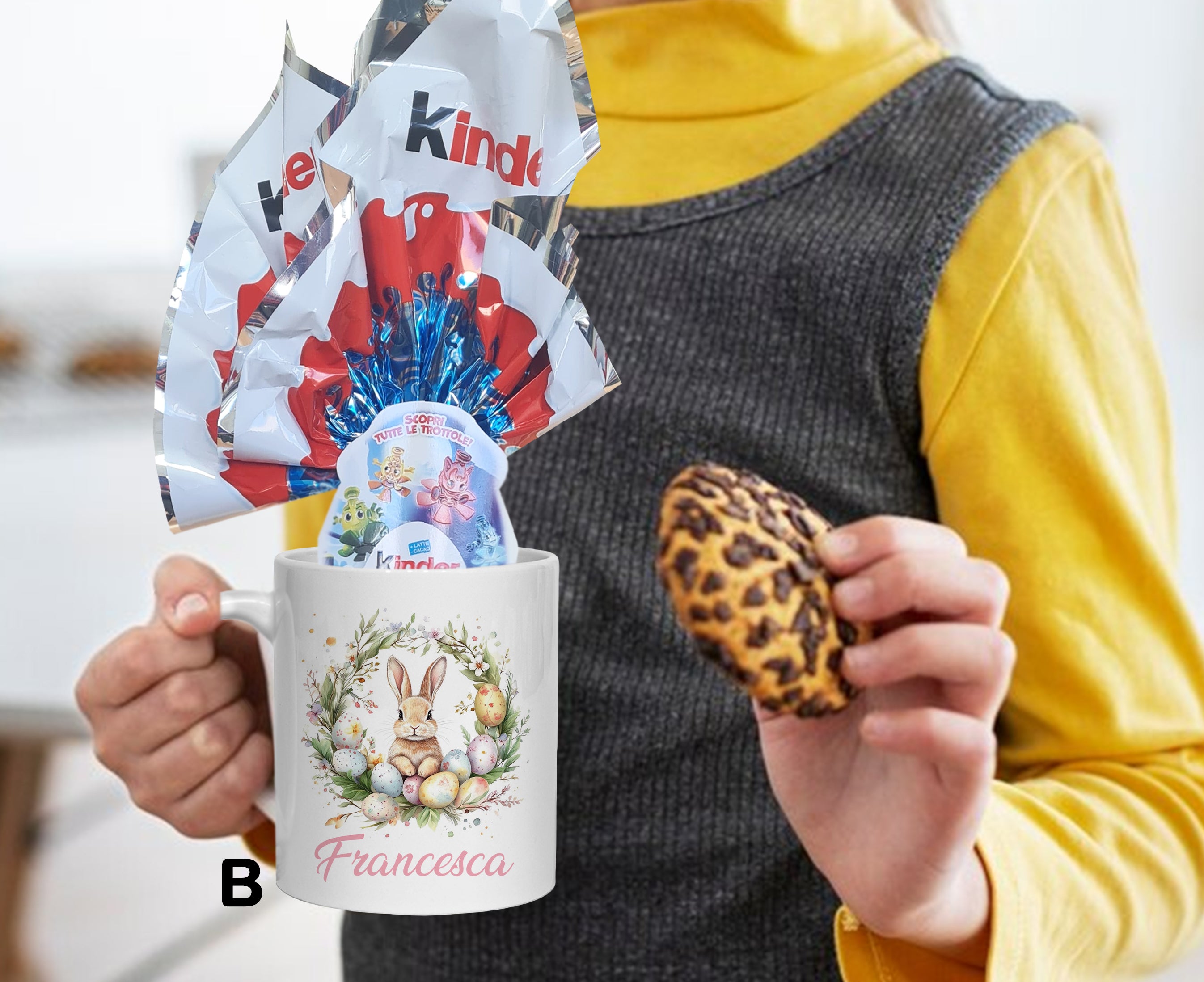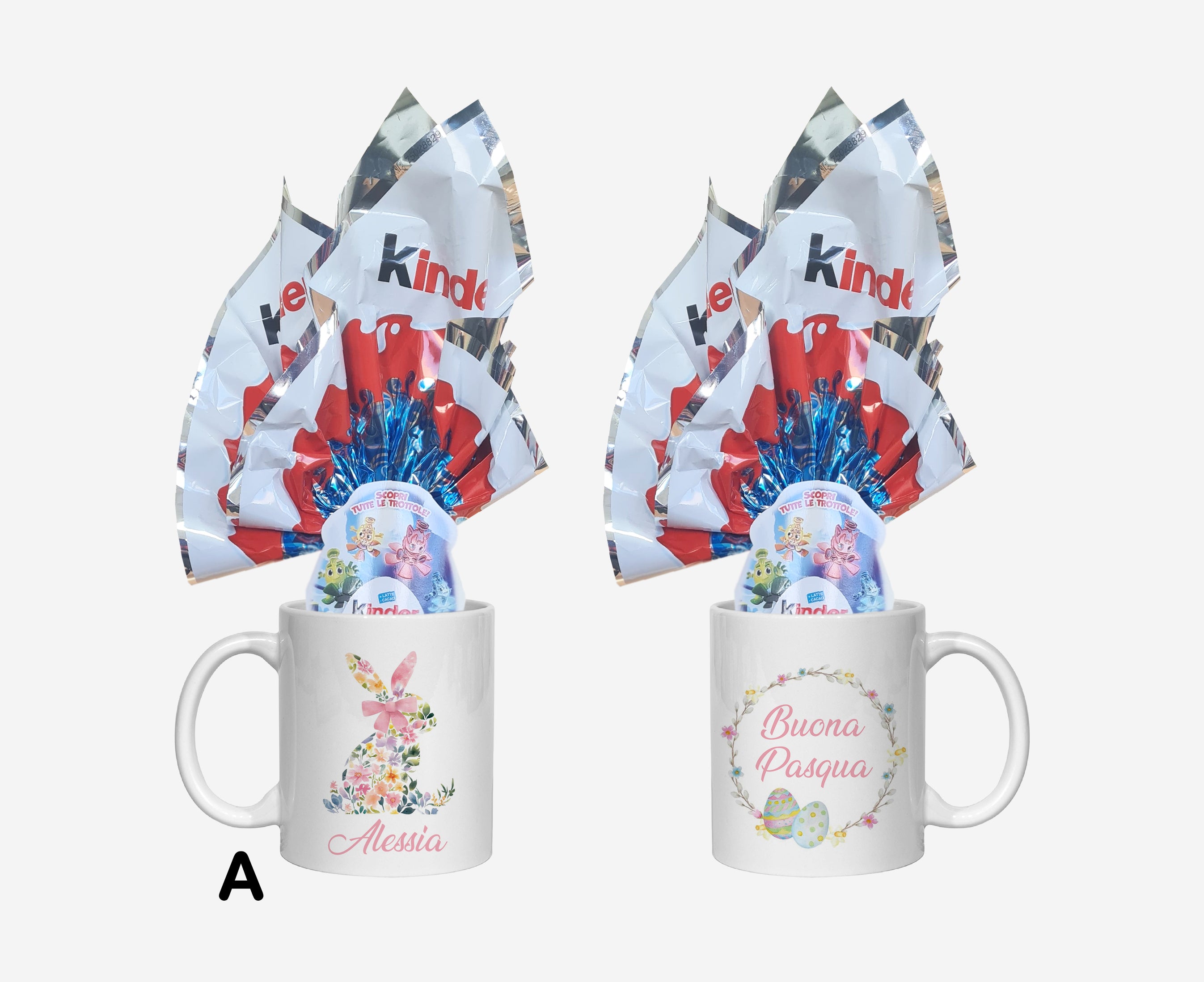 Tazza personalizzata da regalare a PASQUA, completo di uovo Kinder da 41 gr